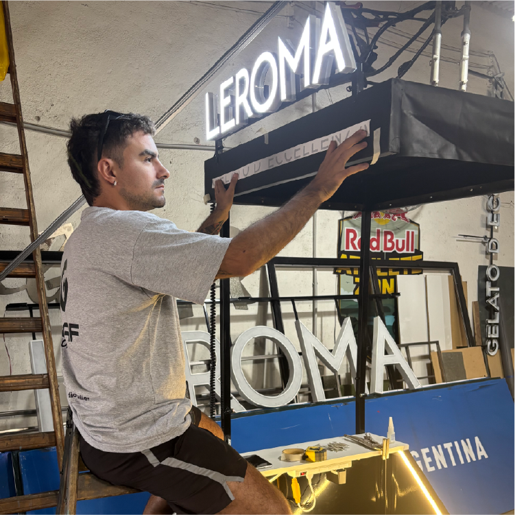 Acompañamos a Leroma en cada una de sus sucursales desde 2020. Desde carteles corporeos, decoración de cada una de sus sucursales, hasta los vinilos promocionales